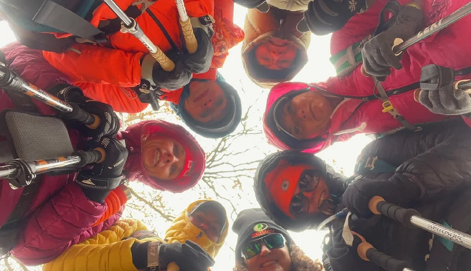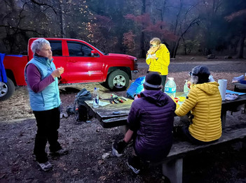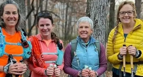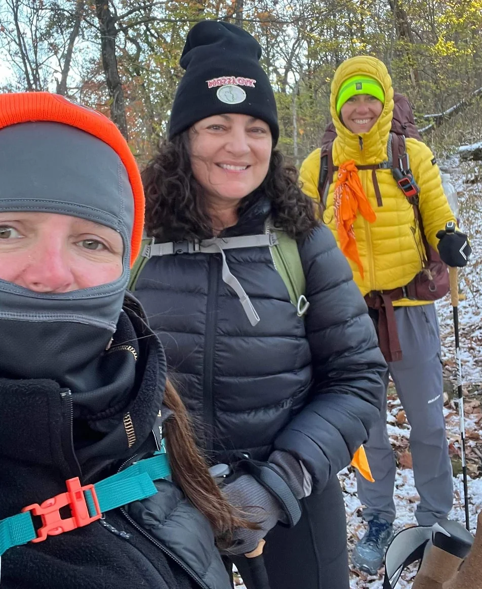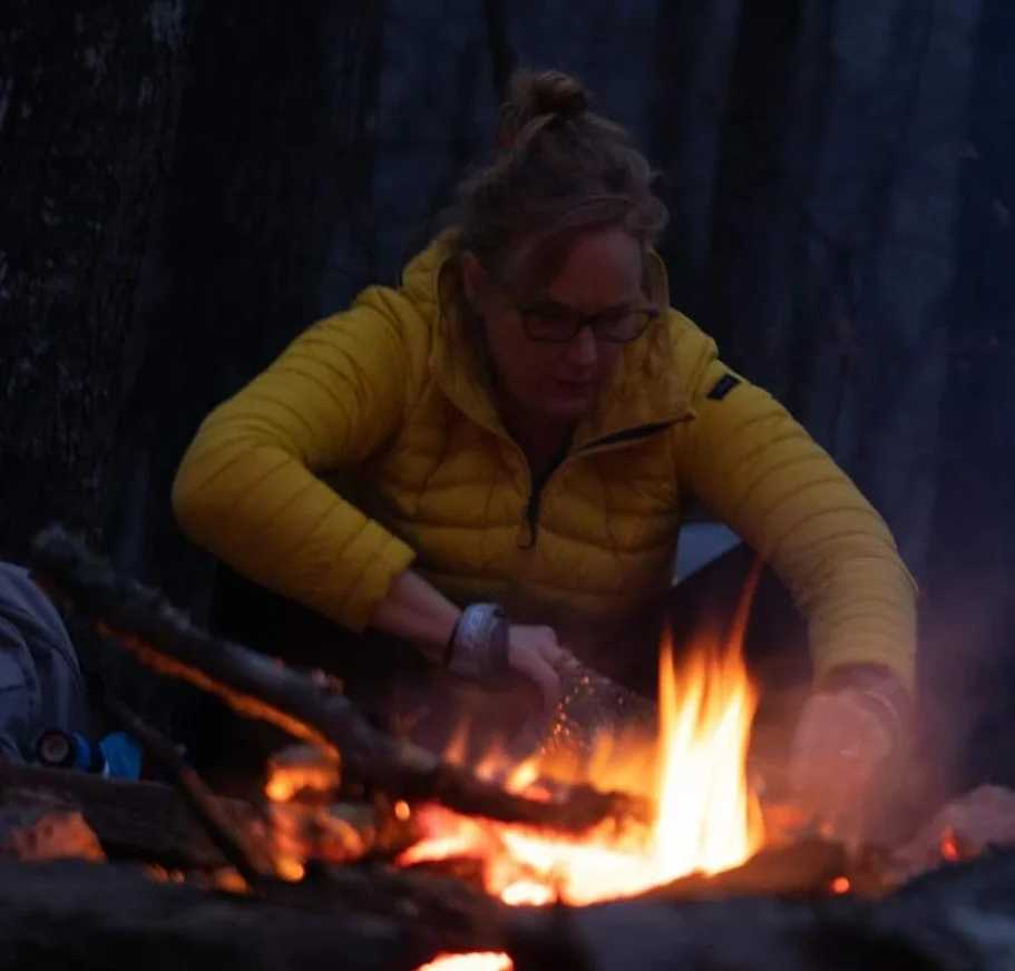 Laura Kuester, the executive director of Help In Crisis, is not just an organizer but also a participant. Photographs from past hikes capture her, sharing stories around a campfire, symbolizing the warmth of community amidst adversities. [below]